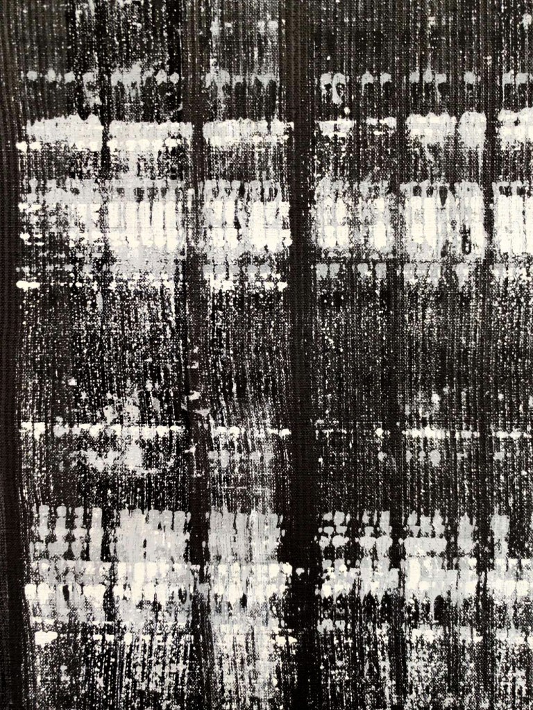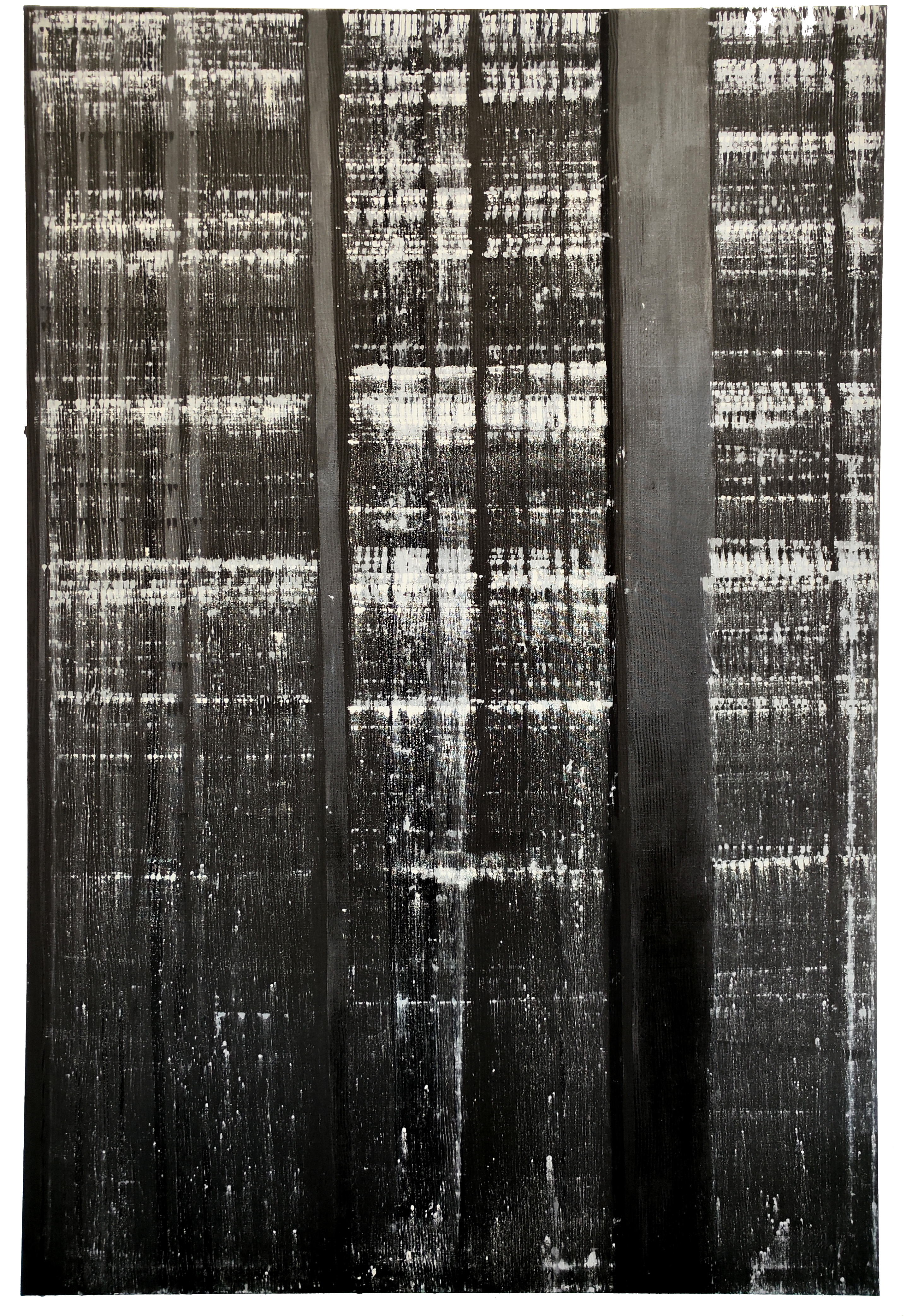 Chromatically I strip decoration, retaining only black and white—barcode starkness, the binary absolutism of 0/1—yet greys and noise inevitably seep through, challenging quantification’s dominion.