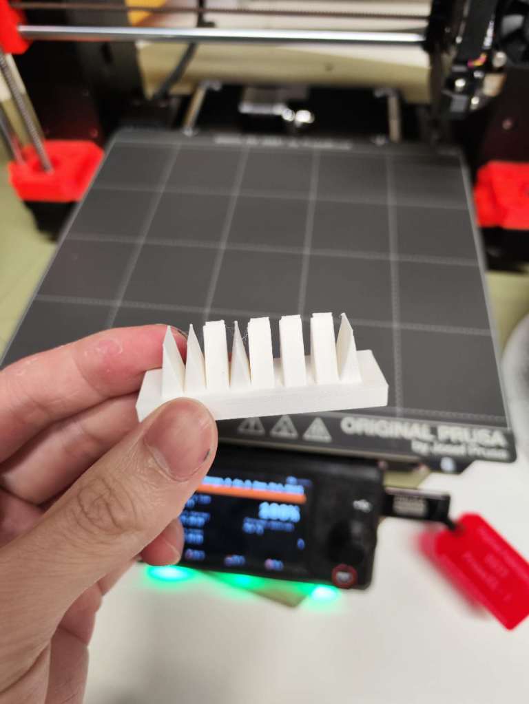 Combining this inquiry with my ongoing research into digital media, I designed a custom brush that itself carries information. Each brush was constructed from binary code: I converted selected words into sequences of 1s and 0s, and each binary digit was translated into a physical form—1 as a wide 3D-printed tooth, 0 as a narrow one. This transformation echoed Marshall McLuhan’s assertion that “the medium is the message.”