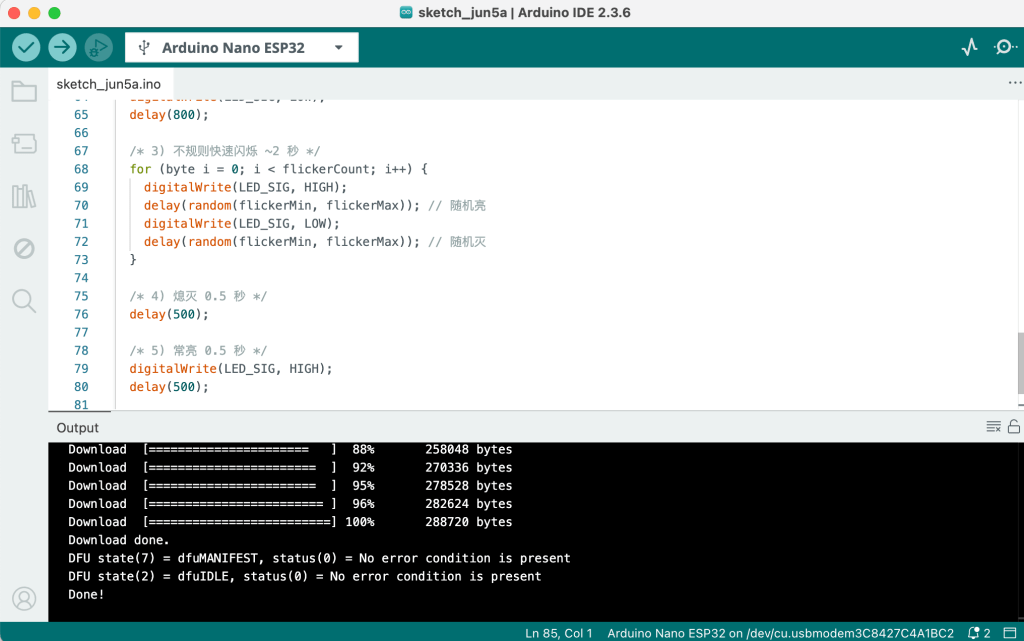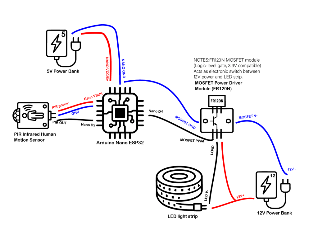 - Arduino Nano ESP32 microcontroller (to run logic and control the flickering sequence),