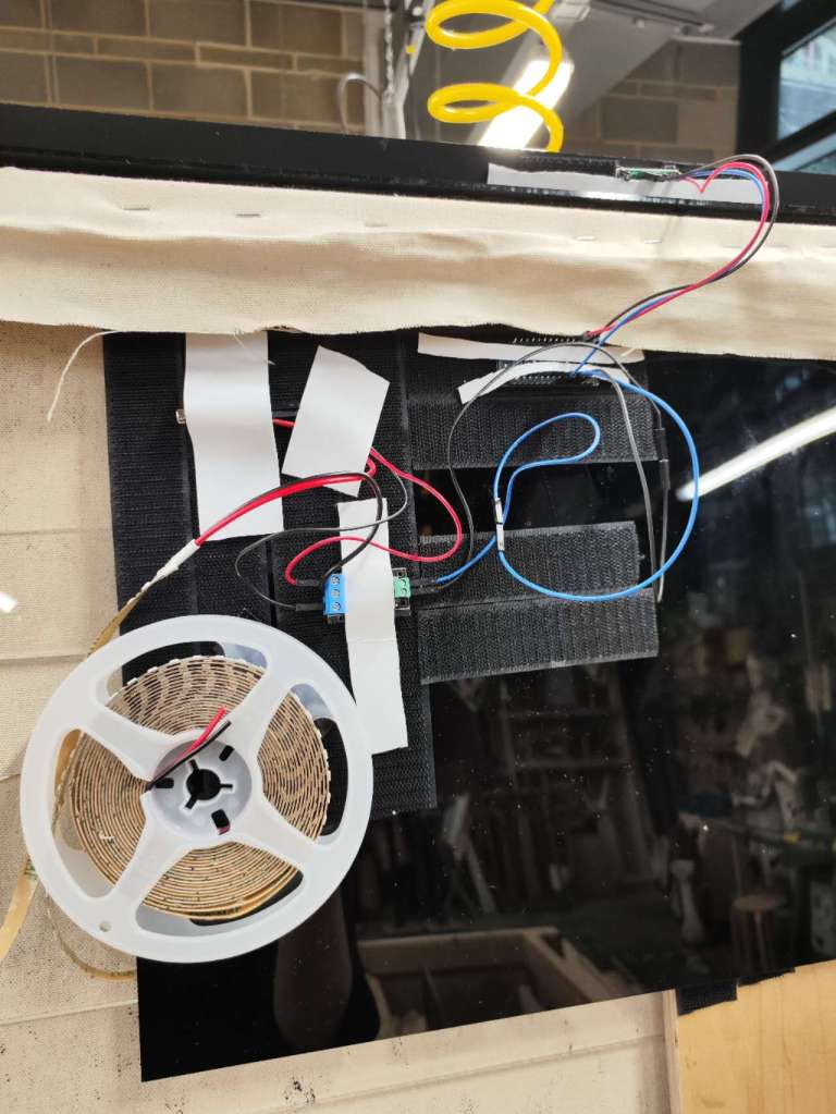 To address this, I began designing an interactive lighting system that would respond to the viewer’s presence, creating an experience of interruption, surprise, or exposure. My plan was for the light to flicker irregularly whenever a viewer approached—mimicking the erratic pulse of a malfunctioning screen.